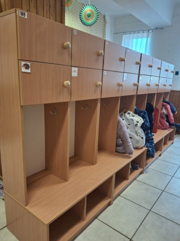 12 db esztétikus öltözőszekrény érkezett a gyermekek fogadó helységébe, amely praktikus és kényelmes lehetőséget biztosít a gyermekek számára.
