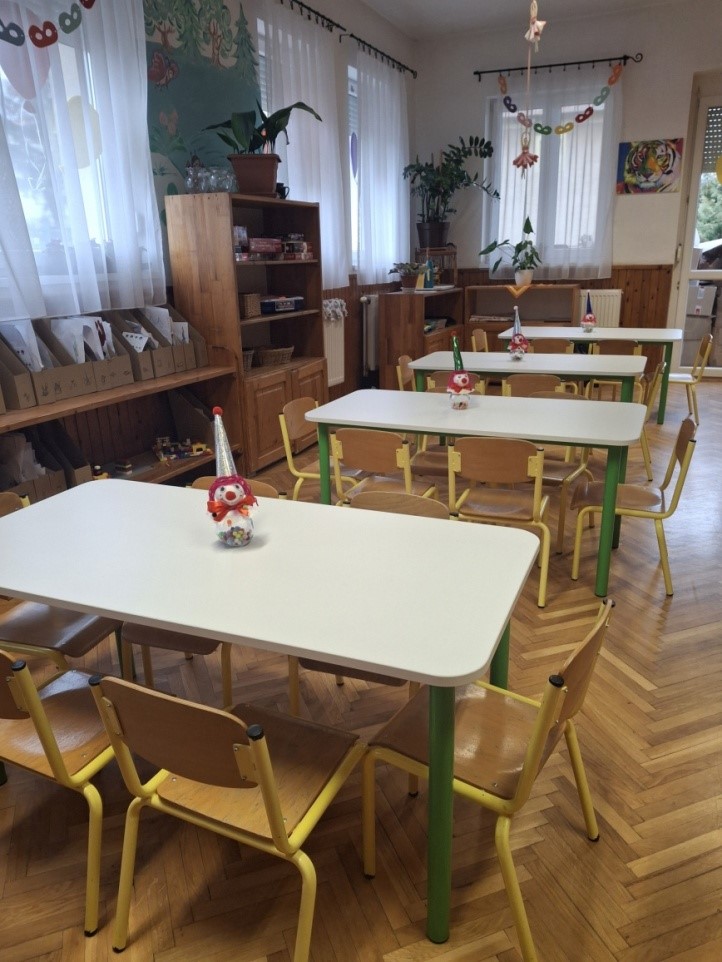 Óvodai asztallal bővült a nagycsoport, ami megfelelő magasságú, így kényelmesen tudnak készülni az iskolai előkészítések alkalmával.