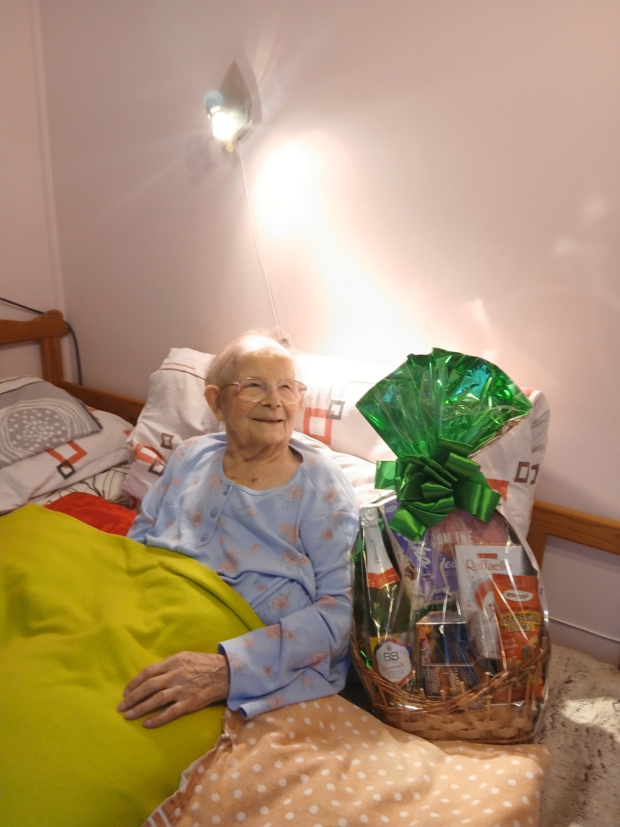 Etelka néni mosolyogva fogadta a jókívánságokat, akinek további jó egészséget és Boldog Karácsonyt kívánunk!